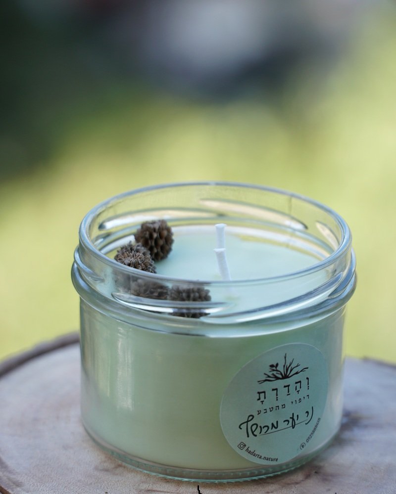נרות 100% טבעיים על בסיס שעוות סויה. נרות מעוצבים וארומתרפיים בריחות משתנים לכל מצב רוח. נר "רגע מתוק"- בניחוח לבנדר וניל. נר "אהבה באוויר"- תשוקה ונשיות. בניחוח ורד, יסמין, ילנג ילנג, קינמון, ברגמוט, מנדרין. נר "יער מכושף"- לאוהבי העצים. בניחוח ברוש אורן ארז ואקליפטוס. נר "שמיים"- מרענן ומשמח בניחוח נענע ואשכולית.